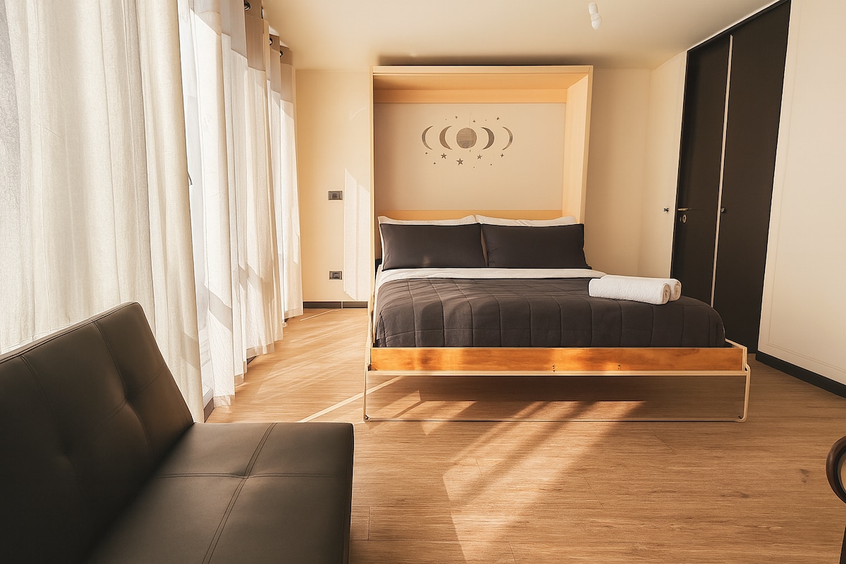 Bine ai venit în casa ta din inima orașului. Acest apartament modern este situat în centru, la câțiva pași de restaurante, cafenele, muzee și transport public. Ideal pentru cei care doresc să se bucure de oraș mergând pe jos. Spațiul a fost proiectat cu stil și funcționalitate: - Pat confortabil - Living și dormitoare cu TV - Bucătărie echipată pentru a găti ca acasă - Wi-Fi rapid - Baie modernă și articole de toaletă Aici vei găsi totul pentru o ședere perfectă și liniștită.