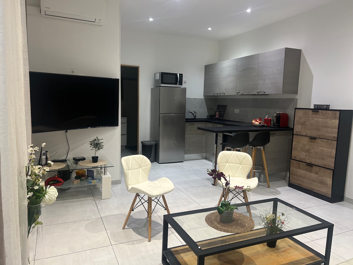 Bucură-te de un apartament elegant și central cu 2 camere, de 40 m2. Situat la o aruncătură de băț de portul Nisa, apartament complet renovat, complet echipat, aer condiționat curat, plajă wi-fi la 10 minute de mers pe jos, tramvai și restaurant aproape la poalele unității de cazare. Vino și descoperă că nu vei fi dezamăgit!!!