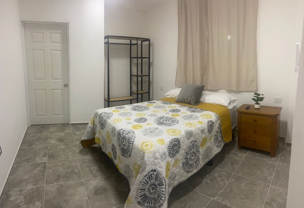 Din această unitate de cazare centrală și spațioasă, puteți avea acces ușor la tot, în fața apartamentului există un OXXO și pe jos veți găsi farmacii, restaurant, cafenele,brutării, magazine, meșteșuguri, bancă, bucătărie economică, pizzerie etc. Anunțul are: (1)Cameră cu 1 pat matrimonial, 1 baie,aer condiționat și TV 1 saltea pneumatică completă (1)Dormitor 1 pat matrimonial, aer condiționat și TV Living-sufragerie-bucătărie Terasă pe acoperiș și zonă de spălătorie