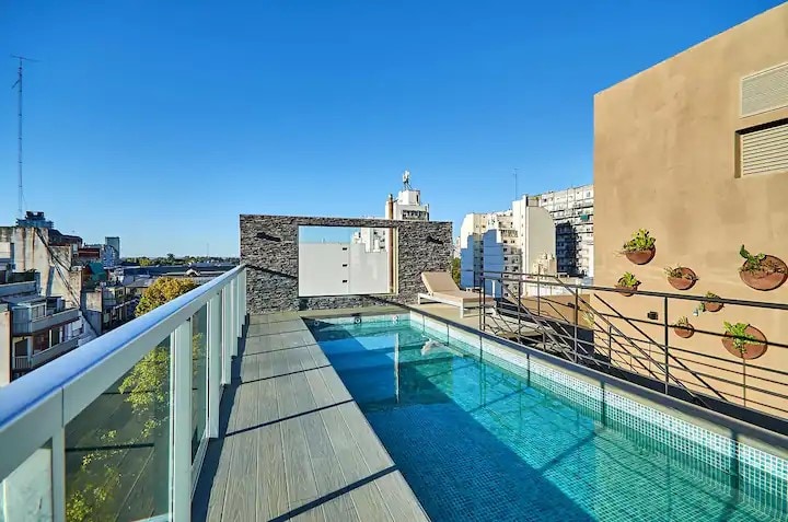 Merită să urci 4 etaje pe scări de marmură pentru a ajunge la această ascunzătoare luminoasă și aerisită. Petrece o seară pe o terasă din tablă de șah, cu un grătar la un capăt și o cadă cu hidromasaj romantică la celălalt capăt. Alege o carte pe care să o citești mai târziu sau îndreaptă-te direct spre patul confortabil de 2x2 m. 2 minute de mers pe jos până la linia de metrou care se conectează la centrul orașului. Recoleta și Palermo se află la câțiva pași. Nu există lift pentru a ajunge la mansardă. Utilizarea jacuzzi-ului în timpul iernii nu este recomandată. Nu are propriul încălzitor, deși poate fi umplut cu apă caldă, se răcește foarte repede în timpul iernii.