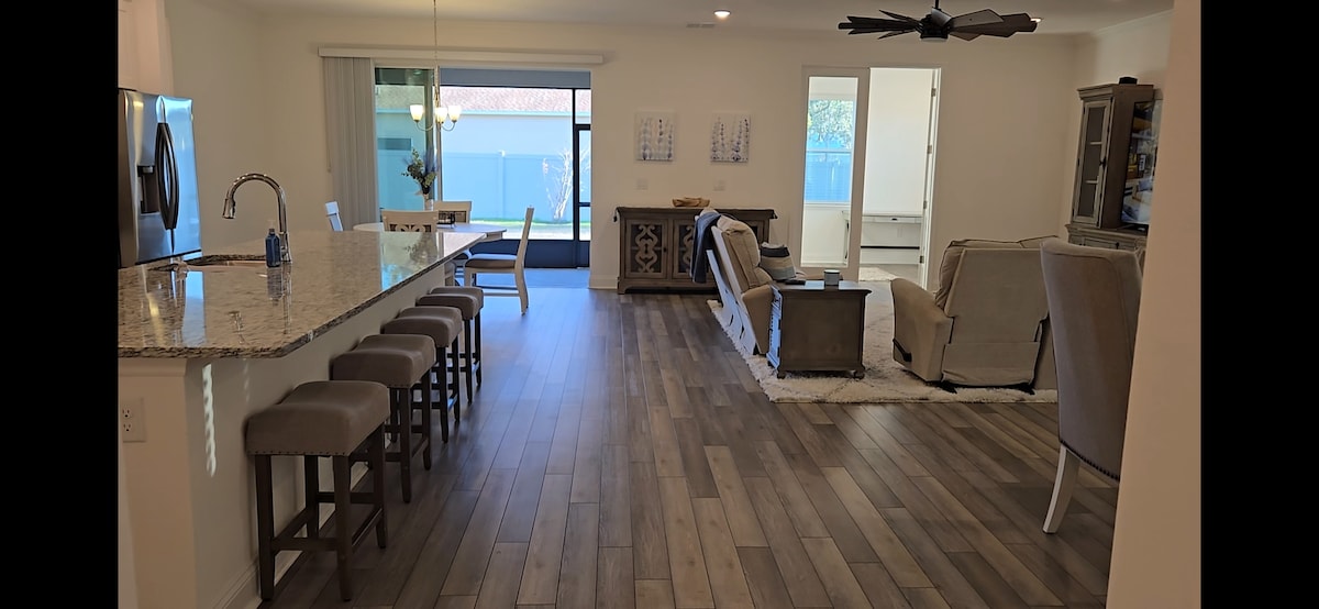 Welcome to our beautiful, stylish, and cozy home with upgraded furniture and beds. A great location in Palm Coast close to famous St. Augustine historical downtown and Speedway Daytona Beach. This hidden gem is only 15 min away from Atlantic Ocean(Flagler Beach),7 min to I-95.Our modern 3BR and 2bathroom house has a big screened in patio with a HEATED pool. This place is perfect for a getaway with family and/or friends for relaxing atmosphere and some fun in the pool or at the beach.
