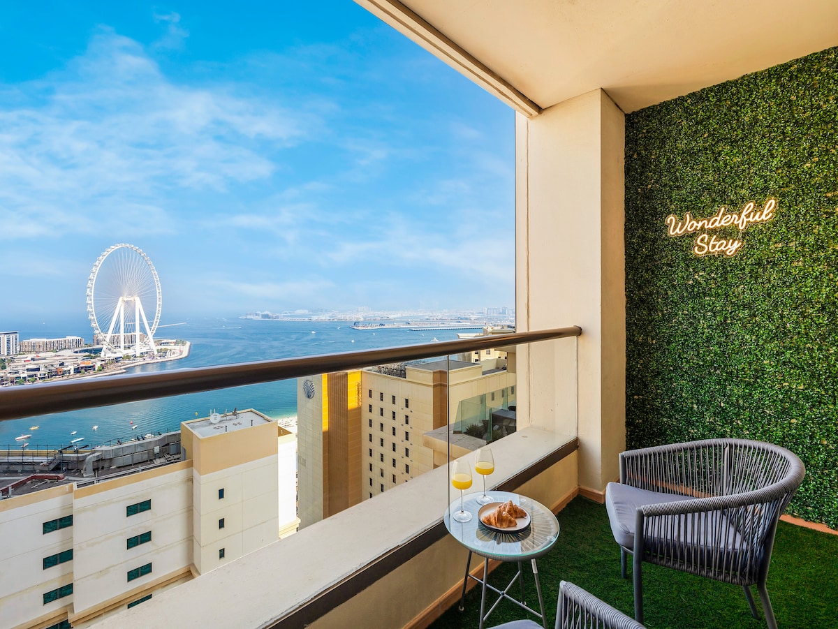 Distrează-te cu întreaga familie în acest loc elegant. Cazarea noastră are două dormitoare spațioase, mobilier de pluș, o bucătărie complet echipată și o terasă primitoare cu mobilier de soare și de exterior pentru a te bucura de aerul oceanului. Există o mulțime de activități de făcut în timp ce te afli aici, de la înot și la o plimbare de-a lungul plajei private. Toate camerele și balcoanele au vedere uimitoare la mare și face față frumoasei palmieri ale insulei Jumeirah, admiră priveliștile și creează amintiri de neuitat cu noi!