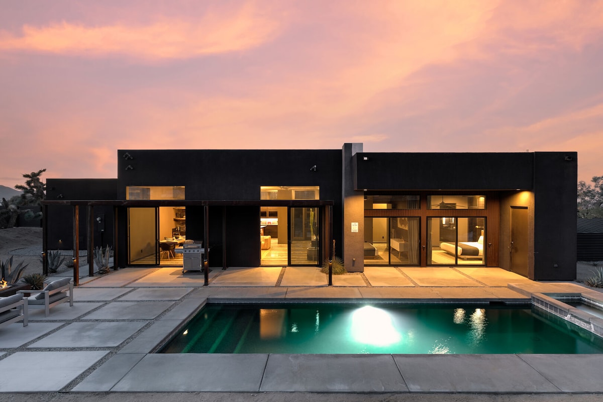 Black Desert House by Homestead Modern is a globally recognized architectural retreat set among boulders in the private enclave of Rock Reach. Designed by Oller & Pejic Architecture, the home pairs bold modern geometry with raw desert surroundings, creating a rare stay defined by stillness, design, and horizon-wide views. From its infinity pool to its immersive glass walls, this is a stay for guests seeking beauty, privacy, and quiet awe.