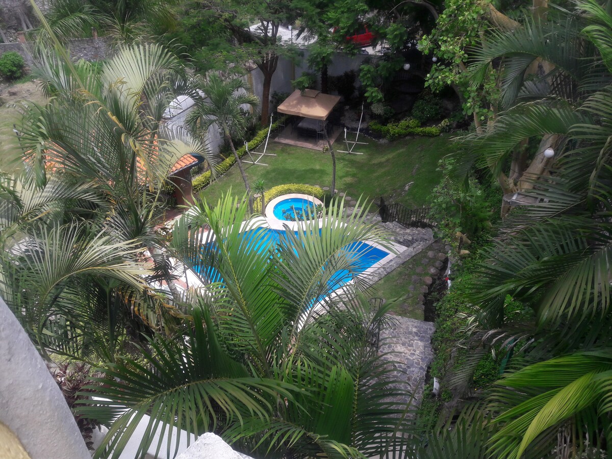 Stil Cuernavaca, situat într-o colonie de prestigiu la 15 minute de zócalo, închis liniștit, fără trafic, foarte aproape de ieșirea spre autostrada pentru Mexic. O piscină complet privată, un jacuzzi cu jeturi de masaj corporal, hamace, șezlonguri, o baie în grădină și un grătar cu cărbuni gratuit. Grădină mare și privată cu două terase și iluminat de noapte exclusivist. Copiii și/sau animalele de companie bine comportate sunt acceptate. Soțul meu și cu mine locuim în casă, dar nu ar trebui să ne vedem.
