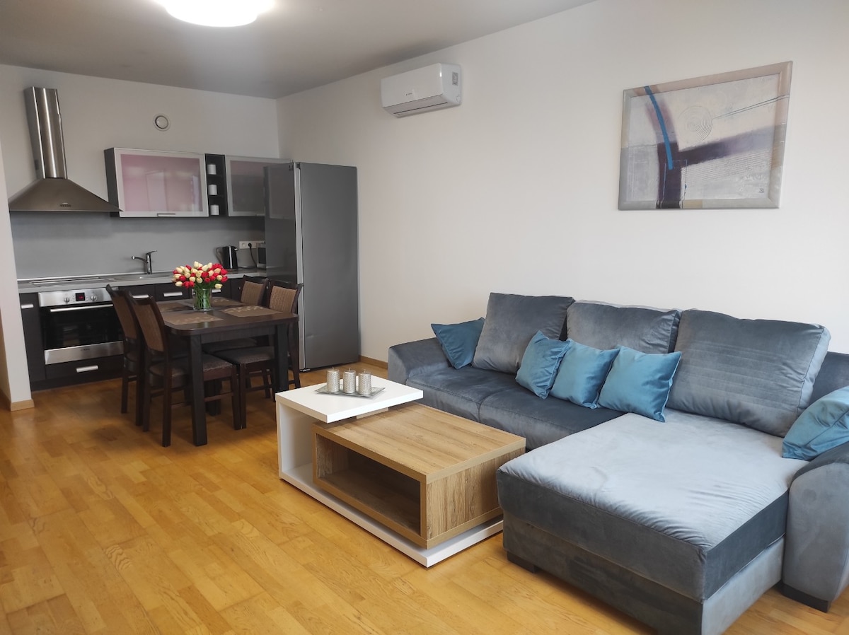 Apartament confortabil, luminos și modern, cu 2 camere, în centrul orașului. Potrivit pentru două persoane, dar poate fi folosit și de patru persoane. Piața Libertății și stația de autobuz se află la doar 2 minute de mers pe jos Apartament confortabil și luminos în centrul orașului. Perfect pentru 4 persoane. Check-in ușor. Primăria este la doar 2 minute, la fel și stația de autobuz.