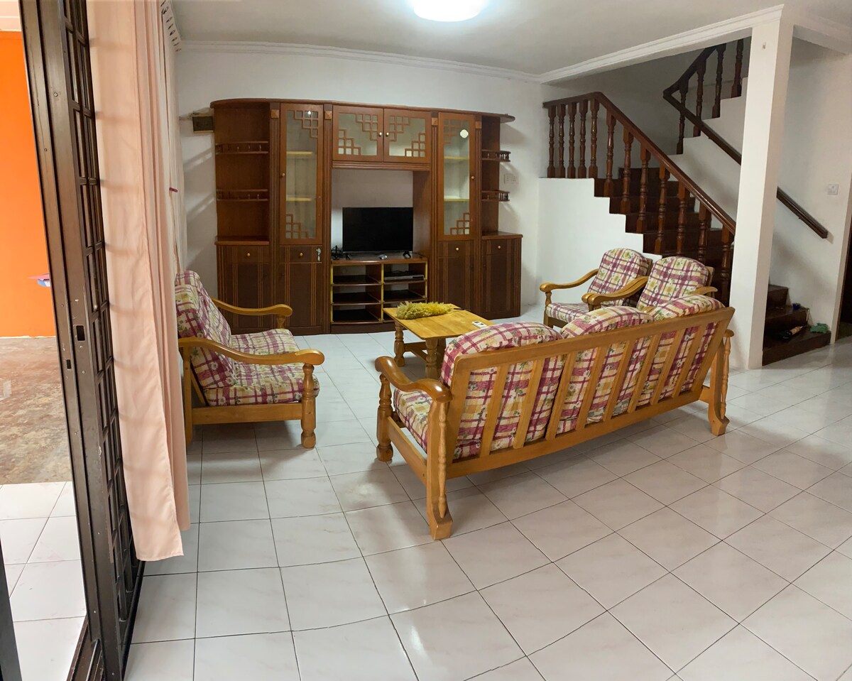 📌 Despre acest spațiu Bine ai venit în casa noastră confortabilă și spațioasă cu 3 dormitoare din Bintulu, perfectă pentru familii mari sau grupuri mari de până la 15 oaspeți. Bucură-te de o casă complet dotată cu aer condiționat, bucătărie completă, Wi-Fi rapid, TV, parcare privată și un balcon liniștit pentru a te relaxa după o zi lungă. Indiferent dacă ești aici pentru muncă sau petrecere a timpului liber, te vei simți ca acasă. Situat într-un cartier liniștit și sigur, la doar o scurtă plimbare cu mașina de oraș, restaurante și atracții locale.