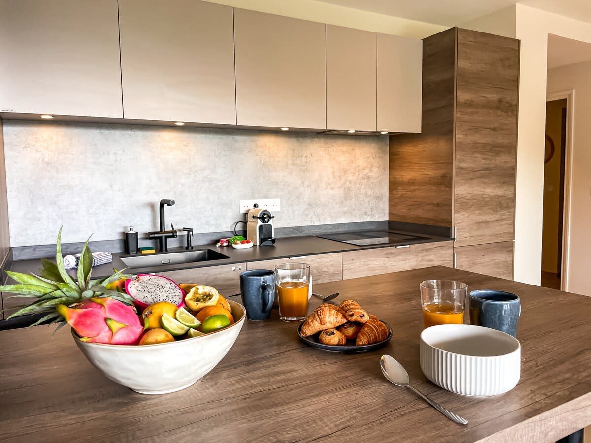 Situat ideal la 5 minute de mers cu mașina de aeroportul FAA din TAHITI, acest apartament de lux de 100m2 te va face să petreci un timp de neuitat în Tahiti pentru călătoriile tale de afaceri sau turism. Decorat de firma de arhitectură Anapa Studio ©, acest apartament de la etajul 4 și ultimul al unei reședințe unice din Tahiti oferă o vedere uimitoare asupra insulei Moorea. Apartamentul are volume mari cu o înălțime a tavanului de 3 m. Camerele au lenjerie de pat de 4 stele. Dormitorul matrimonial de 17 m2 are un pat king-size și este dotat cu un dressing. Al doilea dormitor are 2 paturi de o persoană de 90 cm / 2 m, care pot fi împerecheate pentru a oferi un singur pat matrimonial. Toate echipamentele apartamentului sunt de foarte bună calitate. Bucătărie complet echipată (cuptor, cuptor cu microunde, inducție, frigider cu gheață, mașină de spălat vase, Nespresso) TV 4K sony, sistem audio SONOS, internet de foarte mare viteză, mașină de spălat NETFLIX, uscător Reședința este situată la 3 minute de mers pe jos de mare. Reședința are o piscină lungă de 20 de metri. Reședința are, de asemenea, o sală de fitness frumoasă, complet echipată, cu aer condiționat, cu cea mai recentă generație de echipamente de antrenament. La 3 minute de mers pe jos de reședință, parcul VAIPOOPOO oferă o zonă de recreere pentru copii, locuri tipice pentru mâncare numite "Roulottes". PAPEETE, capitala este accesibilă cu mașina în 10 minute prin RDO. Un supermarket deschis non-stop, disponibil 7/7, este disponibil și la 10 minute de mers pe jos. Marina Taina cu restaurantele și cluburile sale de scufundări este la 10 minute de mers pe jos. În cele din urmă, 5mn de mers pe jos, veți ajunge la un magazin de delicatese cu șampanie, brânză și vin. Portarul nostru "Brice" vă va sta la dispoziție pe tot parcursul șederii pentru a vă răspunde la întrebări. De asemenea, el va putea propune o multitudine de servicii: Organizarea rezervărilor și transferurilor Sfaturi, rezervări și organizarea de excursii, restaurant, vizite pentru a vă face șederea mai plăcută. Pregătirea cinei acasă etc.