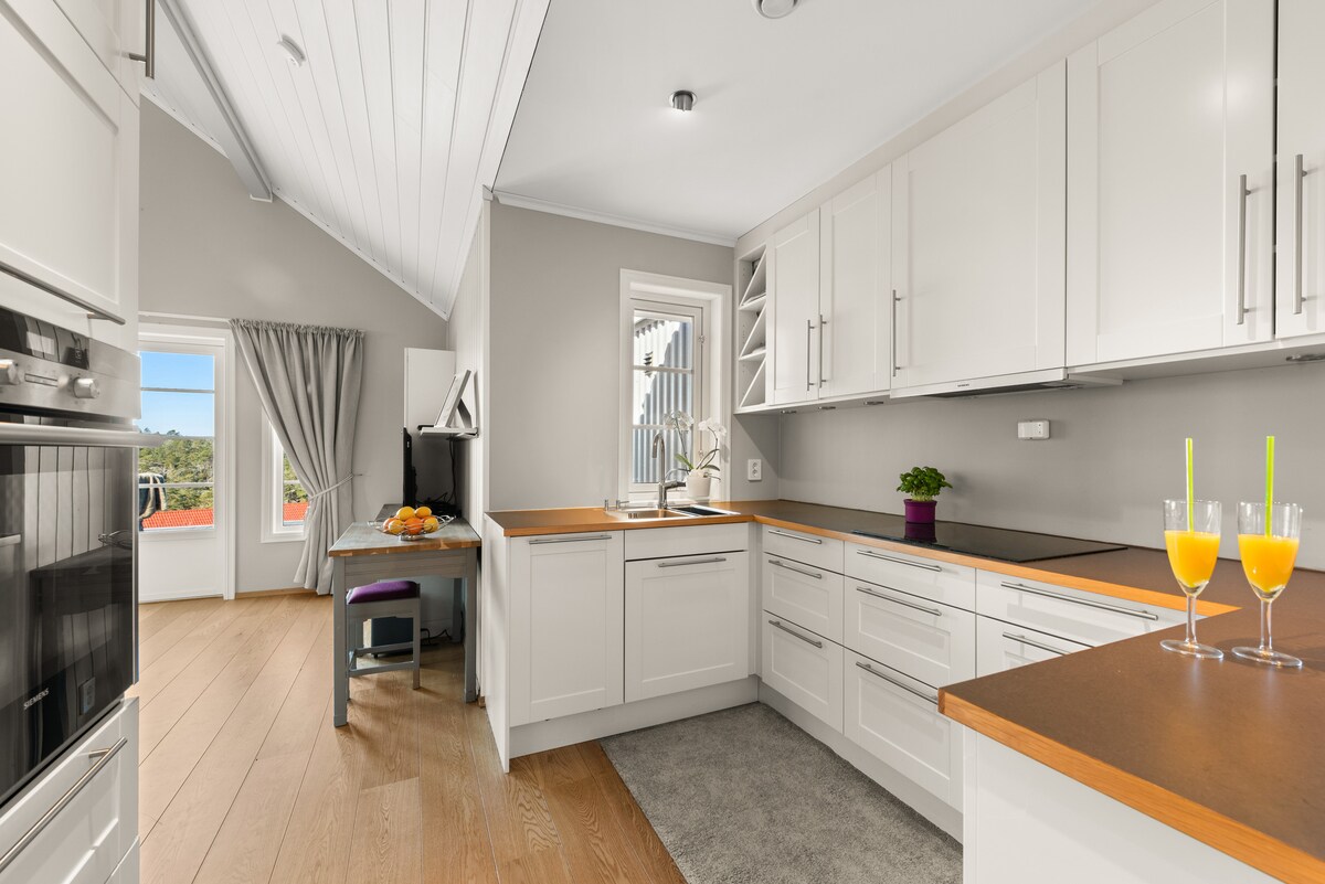 Aproape de orașul din Sandefjord și totuși simți că stai în natură. Parcare gratuită în afara apartamentului. Stații de autobuz la 2 minute de mers pe jos de apartament. Vei vedea fiordul de la ferestre și bărcile spre Suedia. Durează 8 minute să ajungi cu mașina la Sandefjord, 12 minute până la Larvik. Aeroportul Torp este la 15 minute. Pune-ți cizmele de drumeție și mergi direct pe pista de drumeții și folosește kyststien. Televizor nou de 65 inch și internet de mare viteză. Când ești afară, există un trafic vizibil care trece.