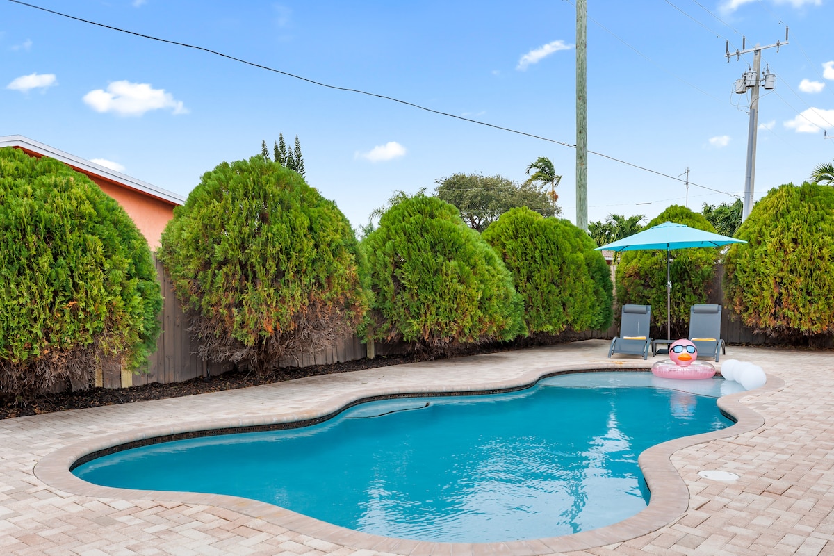 TOCMAI AM OBȚINUT CEL MAI MULT 1% din toate proprietățile AIRBB. Bucură-te de o vacanță magică pe plajă în această locuință recent renovată, cu un singur etaj. Răsfață-te cu cocktailuri de seară sub terasa acoperită și bucură-te de o piscină încălzită, complet lipsită de dăunători! În interior, găsește un living elegant, o bucătărie modernă și trei dormitoare minunate. Cameră pentru întreaga familie, plus o MILĂ până la plajă. Mașină de spălat și uscător cu capacitate mare 4 min de mers cu mașina până la Island Water Sports 5 min de mers cu mașina până la plajă 7 min de mers cu mașina până la Mizner Park Repetări înalte