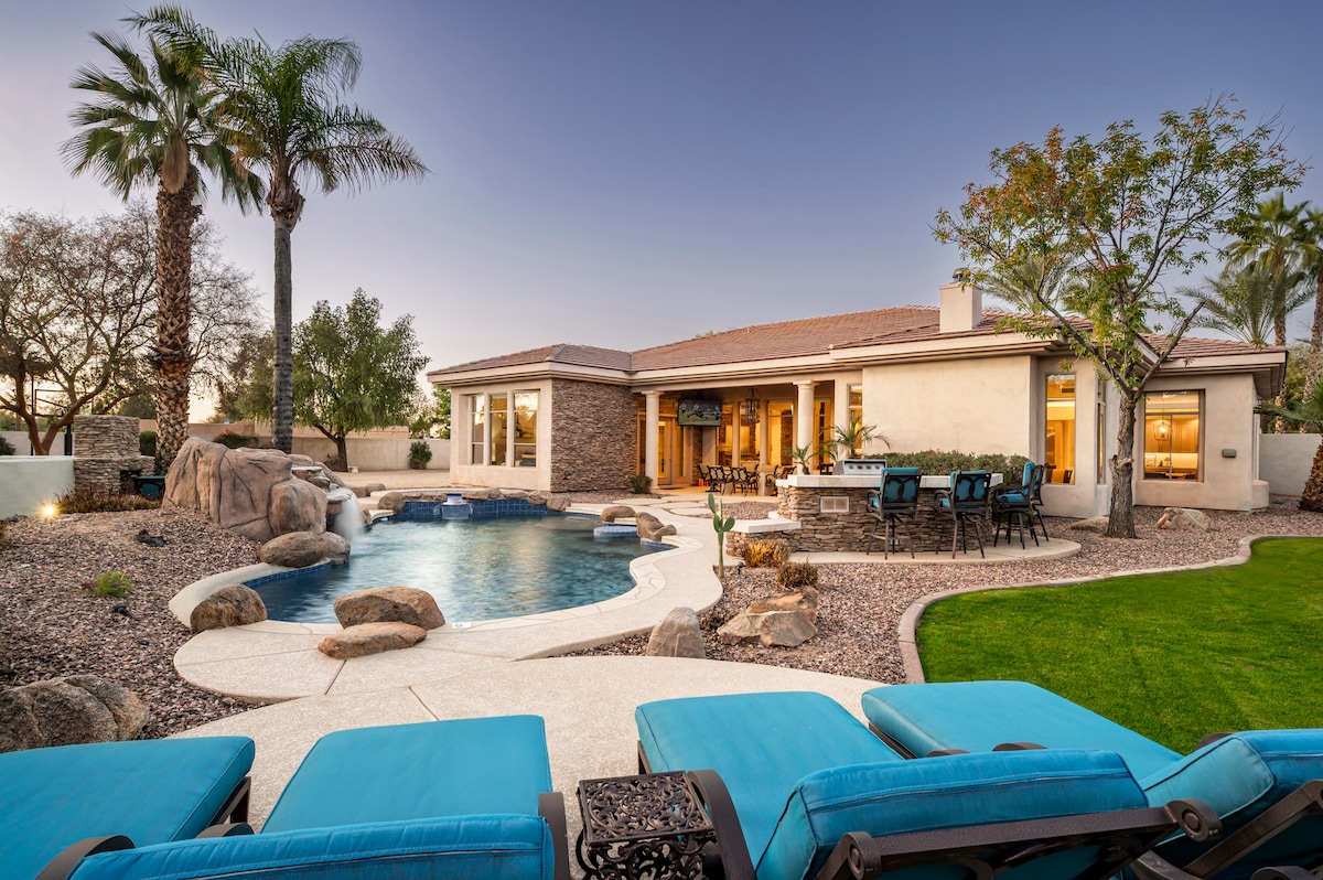 Situată în inima orașului Scottsdale, această casă de lux este locul perfect de vacanță pentru relaxare. Fie că faci o plimbare cu bicicleta Peloton, stai pe scaunul de masaj, te relaxezi lângă piscina cu apă sărată, joci golf pe terenul de golf sau faci limonadă proaspăt storsă din citrice, această locuință face ca petrecerea timpului împreună să fie distractivă! Oaza din curtea din spate, bucătăria bine echipată, sala de antrenament și livingul interior/exterior fac ca această locuință să fie ideală pentru vacanța cu prietenii și familia.
