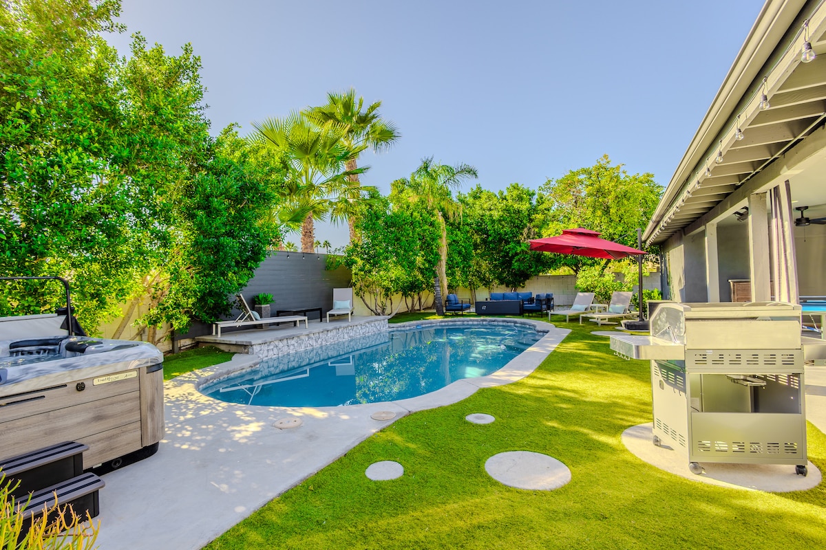 Step into your Dreamy Desert Oasis! Spend hours relaxing in the resort-style backyard, taking a dip in the pool, watching TV on not one but two of the outdoor TV's, putting around on the putting green, playing a game of pickle-ball, & lounging in the many outdoor seating areas. Let your stress slip away in this Scottsdale oasis. Inside the home features brand new renovation & furnishing throughout! The open layout floor plan provides plenty of space for groups to spend their getaway comfortably.