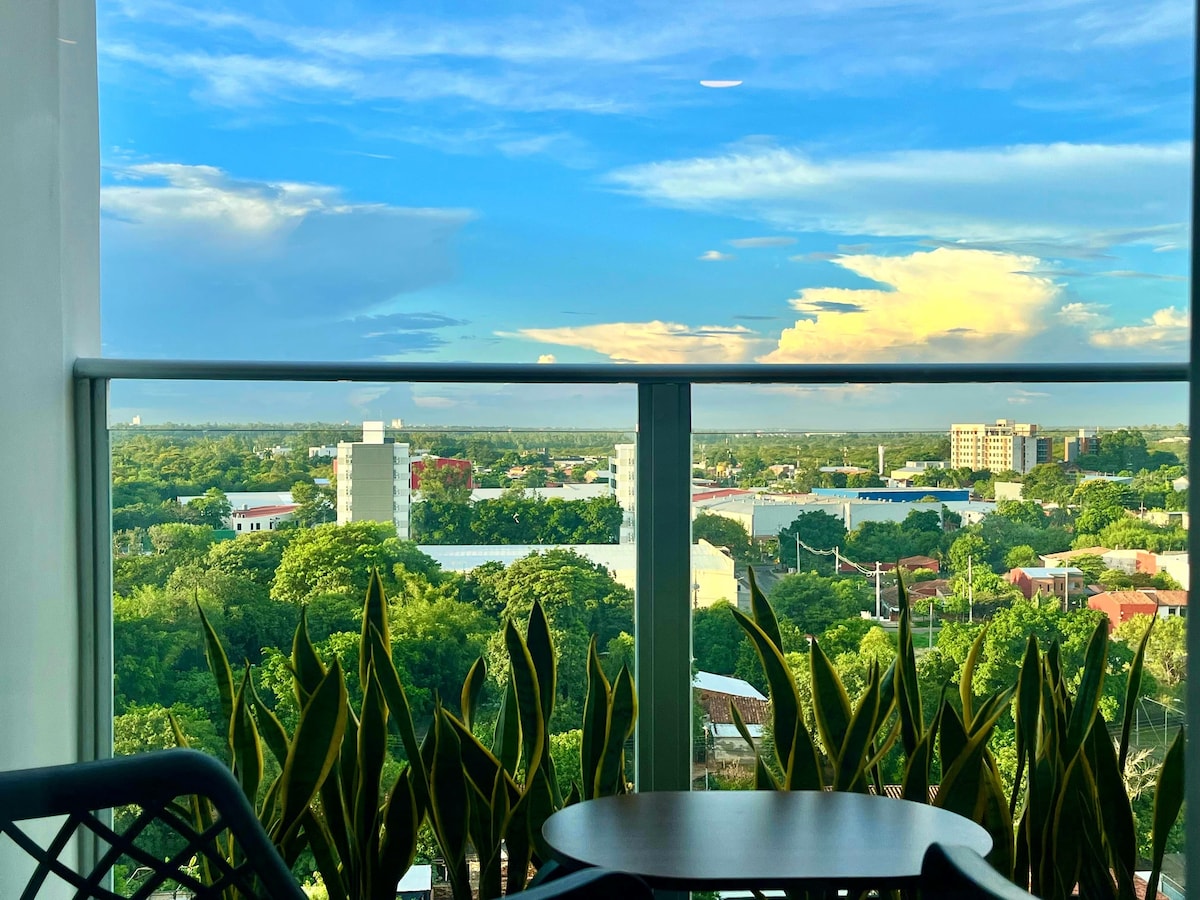 Apartament frumos, confortabil, gata pentru a vă bucura de șederea în Asuncion pentru câteva zile sau pentru câteva luni. Tot ce aveți nevoie este inclus. La câțiva pași de Shopping Villa Morra/Mariscal, supermarket și multe restaurante. Utilizarea piscinei de pe acoperiș, a grătarului și a sălii de sport. Balcon mare cu vedere minunată. Wi-Fi, lenjerie de pat, bucătărie și totul pentru a te face să te simți ca acasă.