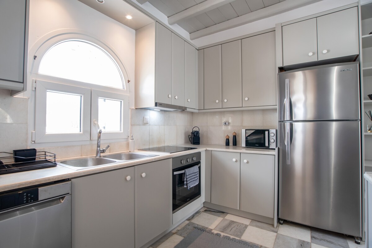 Apartamentul este situat chiar în centrul oraşului Paroikia, în interiorul străzii vechi de piaţă, oferindu-vă acces la aproape oriunde. Portul este la doar 4 până la 5 minute de mers pe jos de apartament, la fel şi parcările, staţia de autobuz, numeroase magazine, cafenele, baruri, brutării şi supermarketuri pentru cumpărături. Nu în ultimul rând, puteţi vizita chiar trei plaje diferite doar de mers pe jos de câteva minute.