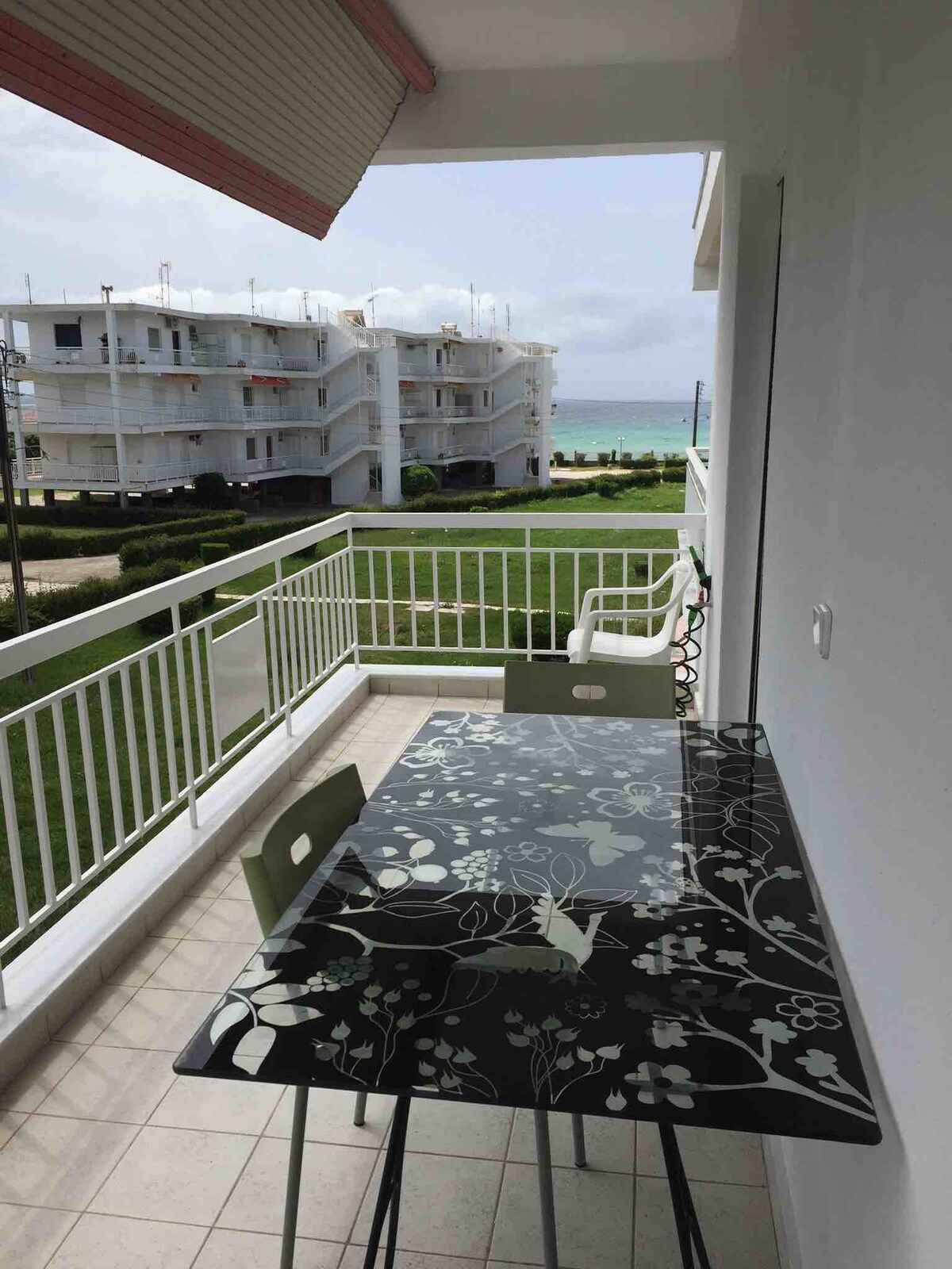 Un apartament complet renovat la malul mării te așteaptă să petreci vacanțe de neuitat în Halkidiki. Se compune din două dormitoare, living cu canapea extensibilă, două terase, bucătărie complet utilată (frigider, aragaz electric, mașină de spălat vase, mașină de spălat rufe) și baie cu duș. Apartamentul este situat pe un teren de 6 acri, cu o multitudine de activități în aer liber, în fața premiatului, cu un steag albastru, plaja Nea Triglia, Halkidiki.