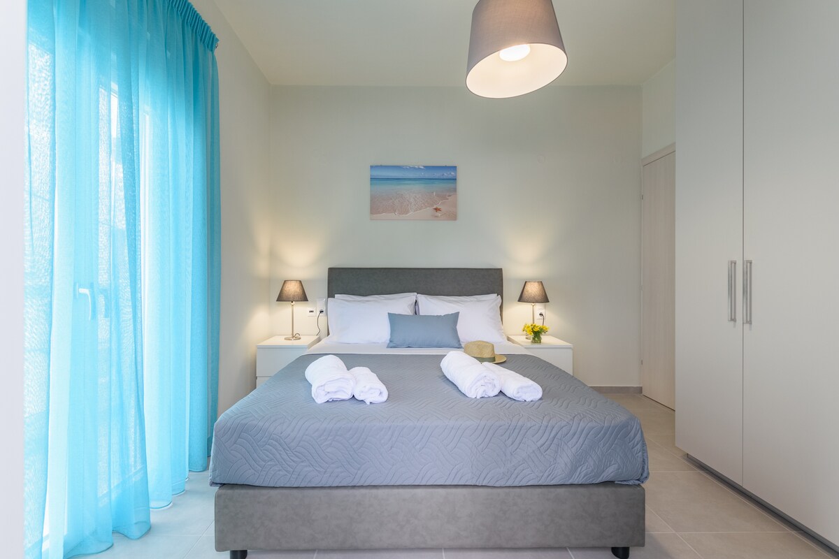 Acest apartament confortabil de 45 mp este ideal pentru 2-3 vizitatori. Acest apartament are două verande cu priveliști libere spre mare, grădină și munte. Acest apartament genial include o chicinetă încorporată cu aparate, care pot deveni "invizibile", dacă nu este necesar. Interioarele complet mobilate și spațiul șic în plan deschis oferă un sejur relaxant, iar operele noastre de artă de pe pereți de la artiști greci de marcă oferă un sentiment de loc. Acest apartament sofisticat este ideal pentru un cuplu.