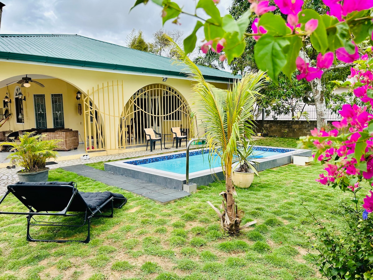 Casă spațioasă în Surivillage, un cartier liniștit din Paramaribo Noord, potrivită pentru grupuri de până la 12 persoane (14 cu garsonieră suplimentară). Casa are 6 dormitoare, o bucătărie complet utilată, o terasă acoperită și o grădină mare cu piscină, perfectă pentru relaxare. Patru dormitoare au aer condiționat, două cu ventilatoare. Un studio suplimentar cu dormitor, baie și chicinetă este opțional de închiriat.