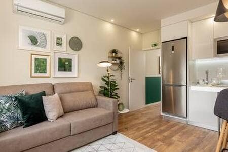 Porto Prime Suites oferece conforto e conveniência, a apenas 5 minutos a pé do Metro do São João. Localizadas no rés-do-chão de um prédio, as suítes são modernas, com decoração clean e todas as comodidades: camas grandes, ar condicionado, casa de banho privativa e kitchenette equipada. O check-in é automático, garantindo flexibilidade, e há estacionamento gratuito na rua. Ideal para relaxar e explorar a região com total conforto.
