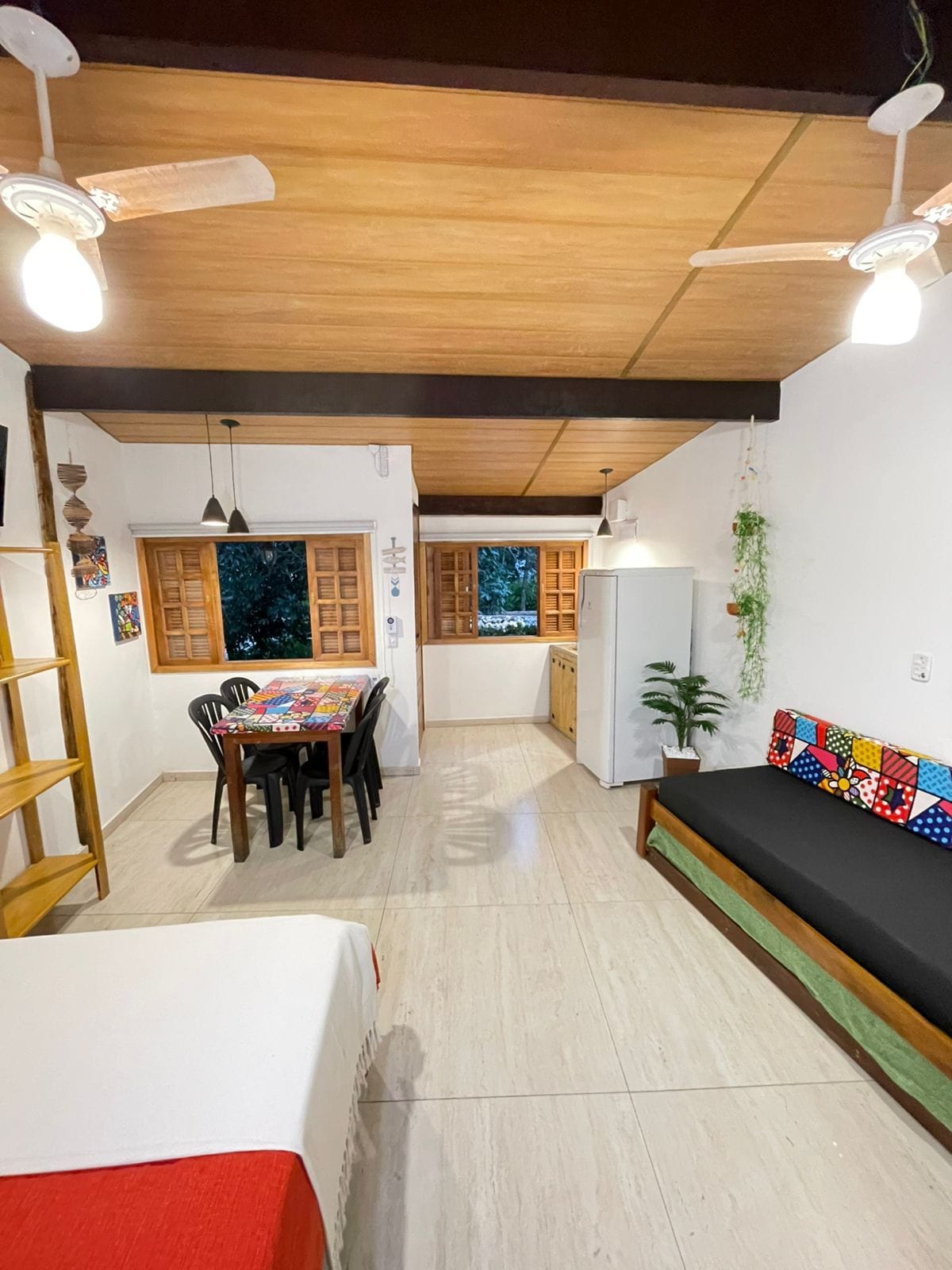 Curte verde exclusivă pentru oaspeții noștri. Casa caiçara nu are zonă comună, cu vedere spre mare, cu acces facil la cheiuri, îmbarcare și debarcare, un gazon frumos cu grădină, șezlonguri, șezlonguri. Toate acestea în cadrul comunității caiçara Ilha do Araújo. Saltele noi, bucătărie cu toate elementele noi. Un loc frumos pentru odihnă, pentru a cunoaște cultura caiçara, locul de muncă, stau cu prietenii. Oferim oaspeților noștri caiac! Vino să ne vezi!