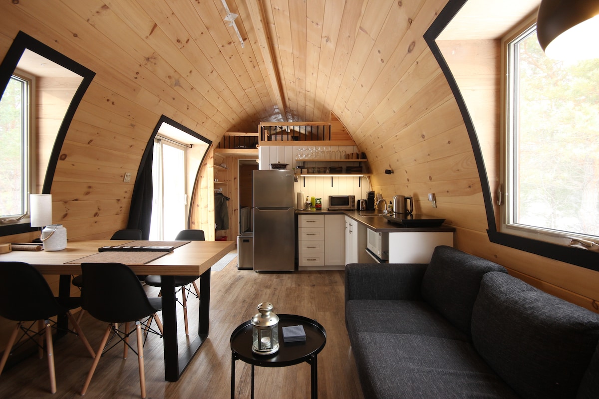 **ATENȚIE. Nu este potrivit pentru familii. Înainte de a rezerva, citește cu atenție detaliile.** Cabană mică în aer liber, înconjurată de copaci, ideală pentru relaxare la țară sau pentru concentrarea asupra unui proiect de artă, scris și lucrat de la distanță. La doar câteva minute de Vallée du Parc, Parc Nationale de la Mauricie, Le Laurentide Golf Club, Le Duché de Bicolline. Aproape de Saint-Tite, centrul orașului Shawinigan și faimosul Trou du Diable. Nr. sediu CITQ: 302795