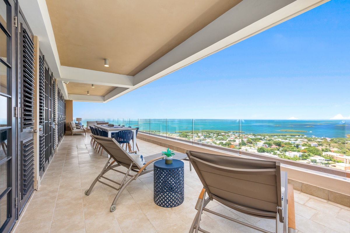 Located in an exclusive sector, first floor apartment with excellent ocean views from living room, master room and kitchen, balcony-terrace. It has wifi, cable, Roku, air conditioning in the rooms. Spacious rooms. The common area has a swimming pool. Equipped kitchen. It is located near excellent beaches, water activities places, bioluminescent bay, famous keys, restaurants and night activities.