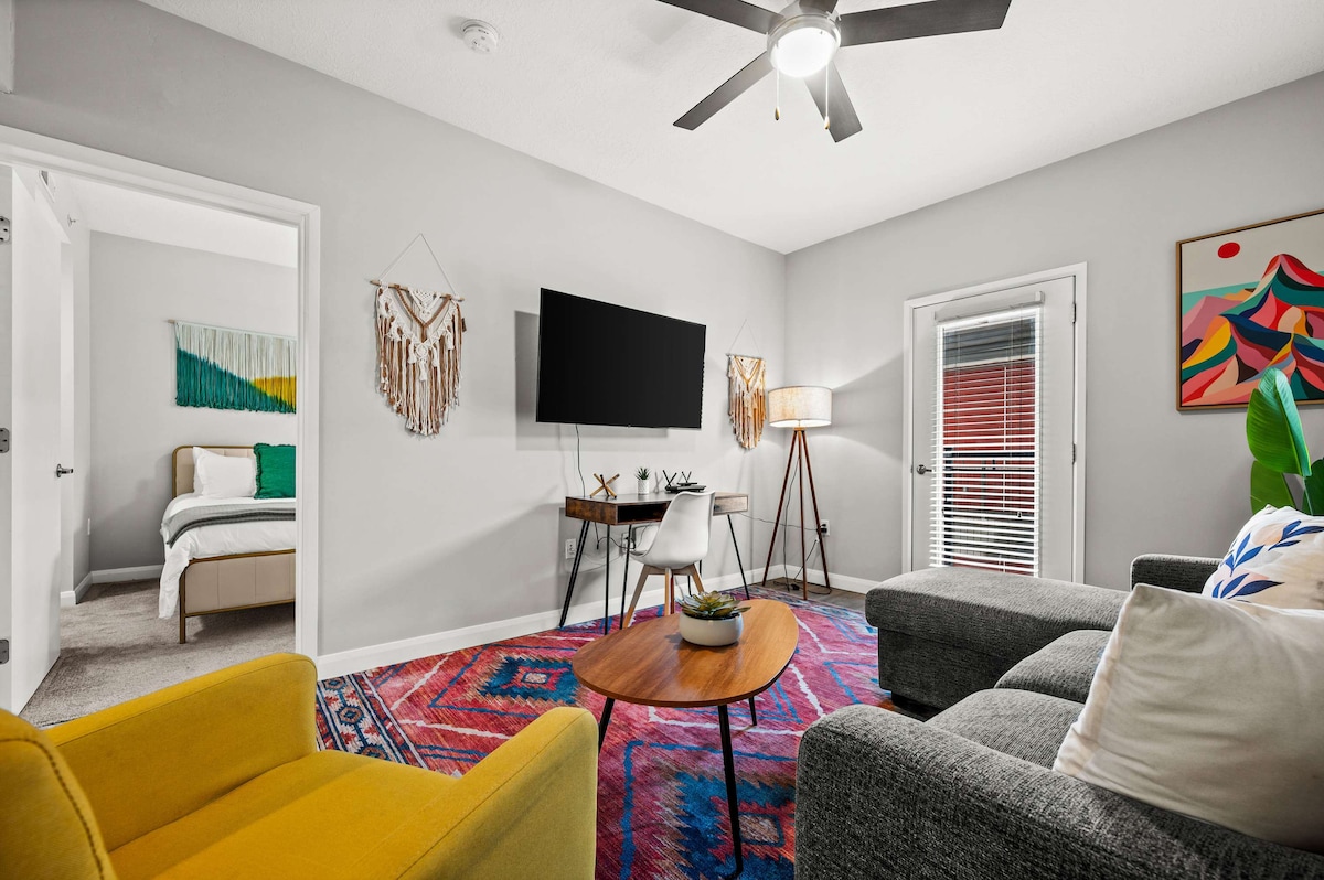 Experimentează luxul în mansarda noastră penthouse, în inima orașului SLC. Bucură-te de priveliști uimitoare la munte din planul deschis al etajului și de decorul boem modern al zonei de zi spațioase, cu un televizor mare cu ecran plat. Bucătăria complet utilată și baia privată cu un duș de lux îți fac șederea confortabilă. Poziția centrală te pune la doar câțiva pași de restaurante, baruri, locuri de divertisment, universitate, spitale și centre de convenții. Rezervă acum și bucură-te de tot ce este mai bun în Salt Lake City.