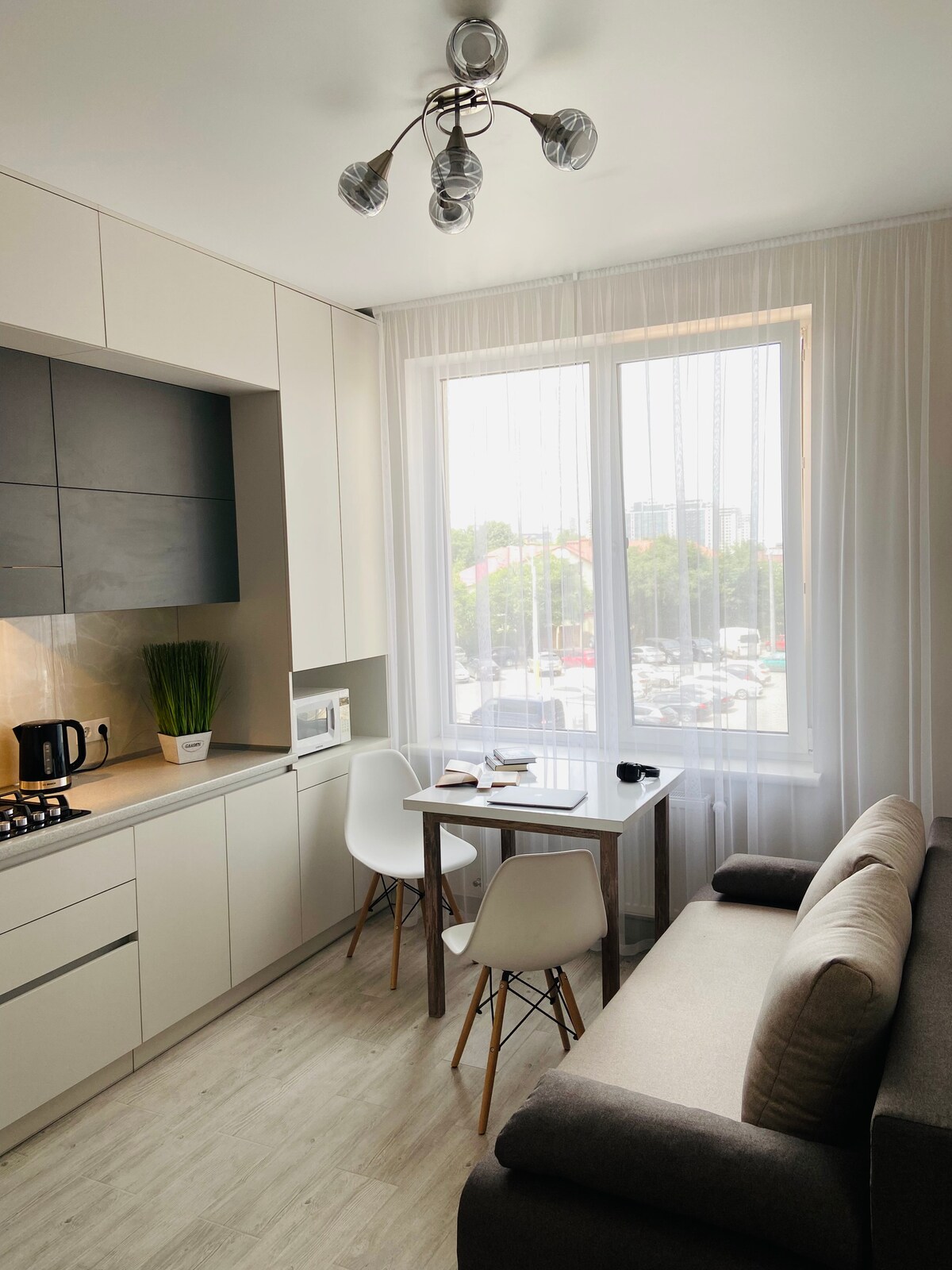 Un apartament elegant în centru, proiectat în stil scandinav, cu mobilier vintage și artă modernă. Acesta este situat la 15 minute de mers pe jos de plajă și la 10 minute de parcul central, înconjurat de multe restaurante și baruri. O clădire pre-revoluționară cu o curte confortabilă în Odessa. Apartamentul are un dormitor separat cu pat dublu și o canapea extensibilă confortabilă în living. Apartamentul este complet echipat cu tot ce îți este necesar.