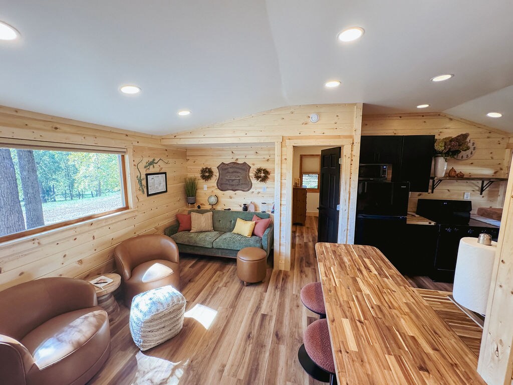 Oferind unele dintre cele mai frumoase priveliști de zi și de noapte ale tuturor cabanelor noastre, The Stargazer are Turkey Run State Park și Sugar Creek la ușa din spate! Complet renovat în 2025! În interior, doarme confortabil până la 8 oaspeți, cu două dormitoare cu paturi matrimoniale, plus o cameră supraetajată confortabilă separată de perdele și echipată cu două paturi duble. Zona principală de living include o bucătărie complet aprovizionată și o baie spațioasă.