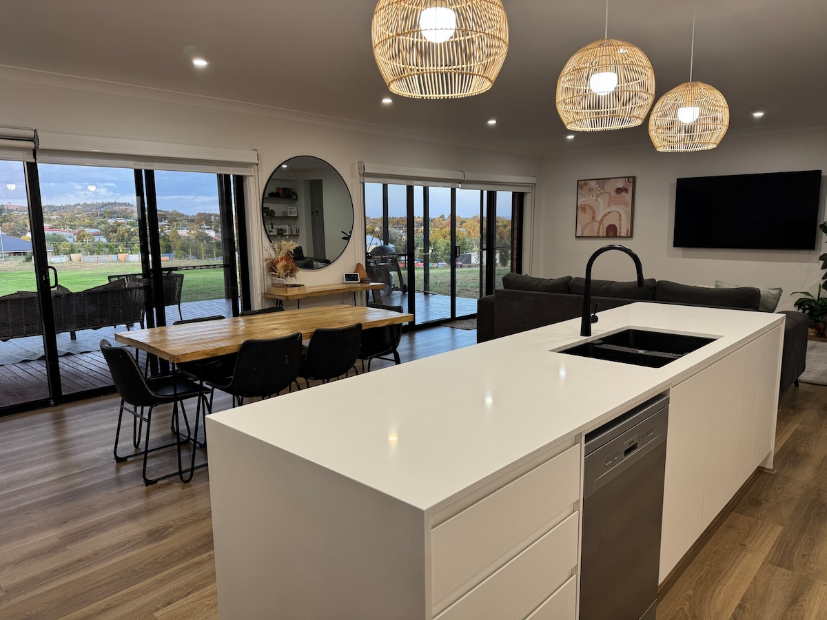Bucură-te de o schimbare de peisaj în această locuință recent renovată, cu 3 dormitoare și 1 baie, cu apartamentul bunicii ideal ca al 4-lea dormitor. Curte mare în spate cu garaj și carport. Bucătărie și baie moderne și spațioase, noi. Dormitoare mari frumos mobilate, cu lenjerie de pat confortabilă, 2 x paturi queen, 1 x pat king și 1 x pat dublu. Curte însorită în față și în spate, cu zonă de luat masa în aer liber, cu vedere la oraș. Încălzire și aer condiționat cu ciclu invers și răcire prin conducte. Simte-te ca acasă în această bijuterie a țării.