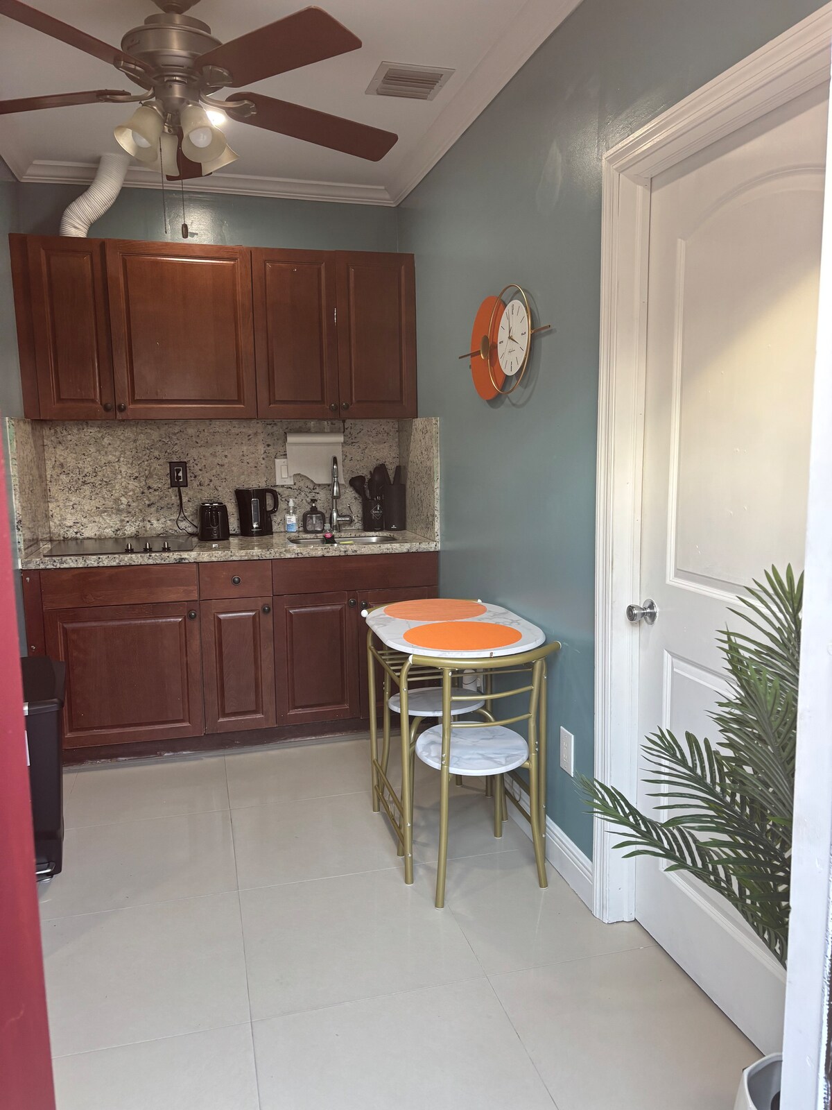 Come and have a local experience, but with the privacy of your own studio! Completely renovated guest suite in quiet, family centered neighborhood. Brand new everything, luxury waterfall shower, comfortable king bed, Smart TV (no cable), kitchenette (please note there is no oven or stove), with mini fridge, microwave, sink, electric burner, electric grill, and your own washer and dryer! Private outdoor area! Hosts are Deerfield Beach locals and right next door to help with whatever you need!