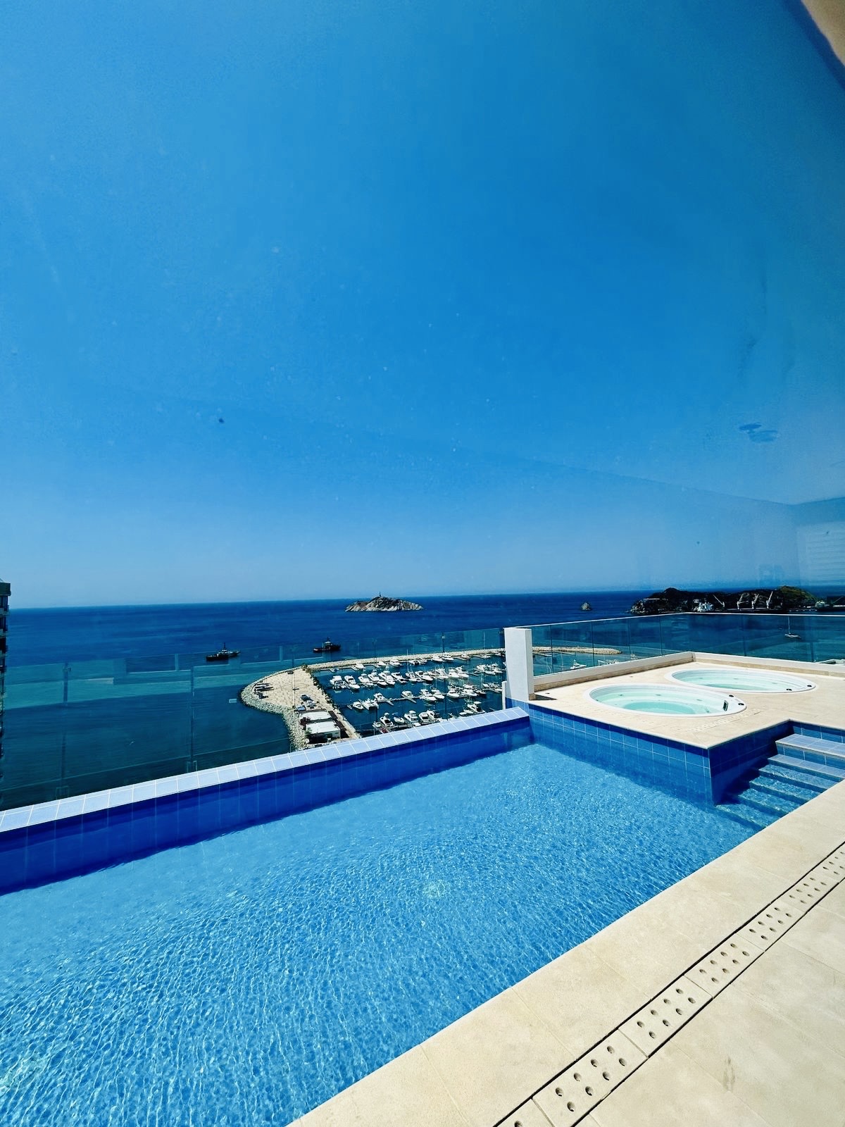 Wake up to the sound of the sea and enjoy Santa Marta’s most magical sunsets from the balcony of this bright, elegant apartment. Located on the 13th floor of the exclusive Grand Marina Apartasuites, with access to the spectacular AC Marriott hotel pool. The building also features its own gym and sauna. Modern, stylish, and full of light, with a fully equipped kitchen, workspace, fast Wi-Fi, and private parking — your perfect home by the sea.