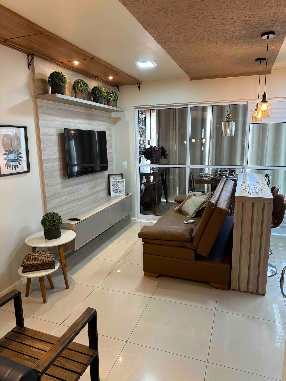 Apartamentul are arhitectură semnată de unul dintre cei mai renumiți profesioniști din Goiânia. Ideea este să te poți simți ca acasă în timpul șederii. Toate automatizate; lumini, perdea, TV, aer condiționat care oferă confort și rafinament, doar cere Alexa. Ascultă muzică, urmărește peste 1.600 de canale deschise și închise. Fă un duș plăcut cu un duș generos. Fă fotografii și odihnește-te pe balcon cu o priveliște senzațională a apusului de soare și tavan acrilic.