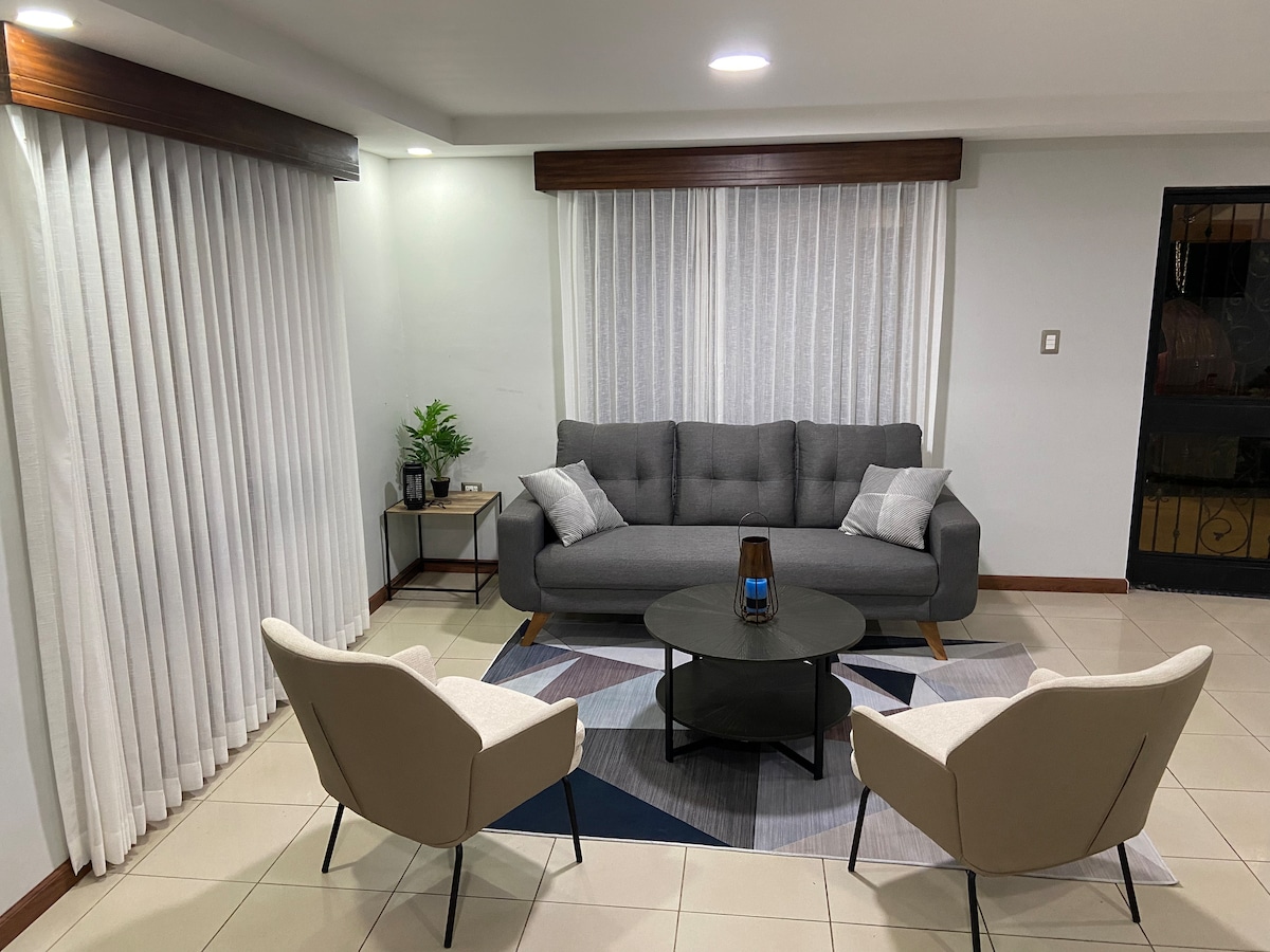 Bine ai venit la PROVECHOZAS: CASA MANGO! Această unitate este situată pe o proprietate de familie, cu pomi fructiferi și faună sălbatică. Acest loc elegant, cu un pat confortabil de dimensiuni normale și o cameră/canapea (living) , balcon minunat, artă uimitoare și loc privat și central pentru odihnă și reîncărcare, ceea ce îl face opțiunea perfectă pentru a-ți planifica următoarea aventură sau pentru a te relaxa înainte de zbor. Oferim un loc de parcare interior Locații: Aeroportul SJO (3 km) City Mall (200 de metri) Centru sportiv (300 de metri) Centrul orașului (2 km)