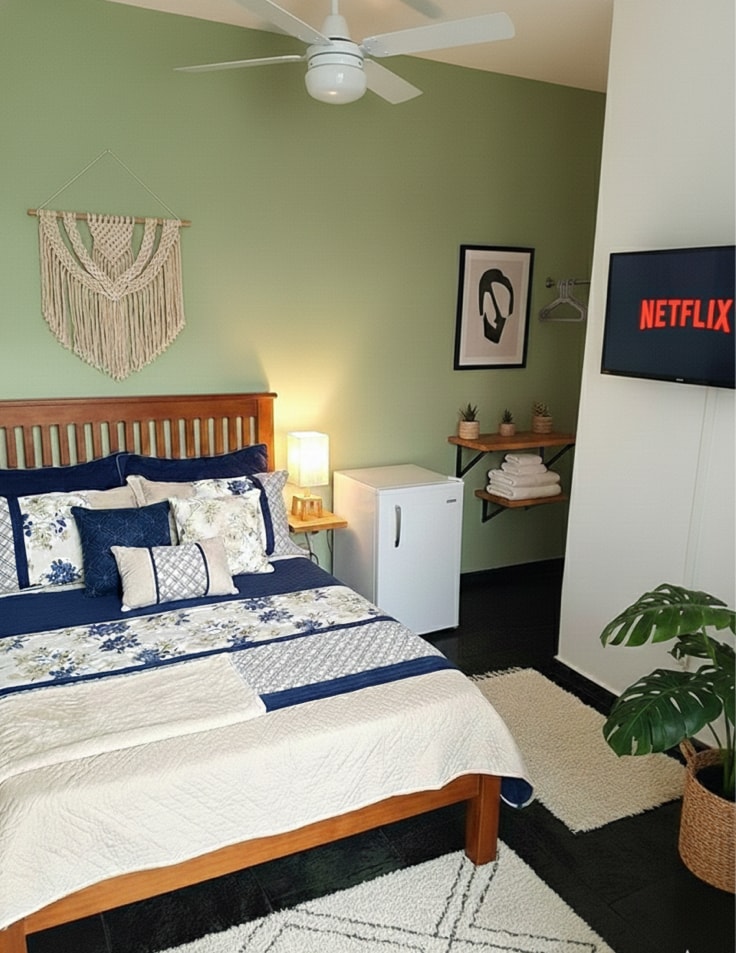 Quarto acolhedor com varanda na beira-rio