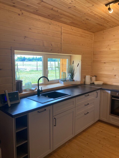 Casă fermecătoare pe tot parcursul anului, chiar pe lacul Morzycko – perfectă pentru o evadare romantică sau un weekend cu prietenii lângă grătar. Complet utilat și încălzit, oferind confort în fiecare sezon. Lacul se află într-o zonă liniștită, astfel încât te poți relaxa fără bărci cu motor sau jet ski. Sunt incluse o barcă cu vâsle și un caiac. Ideal pentru pescuit, plimbări în pădure și ciclism pe traseul Blue Velo, cu acces direct la apă, doc, plajă și pădure. Priveliștile frumoase ale lacului și apusurile de soare liniștite completează experiența pe tot parcursul anului.