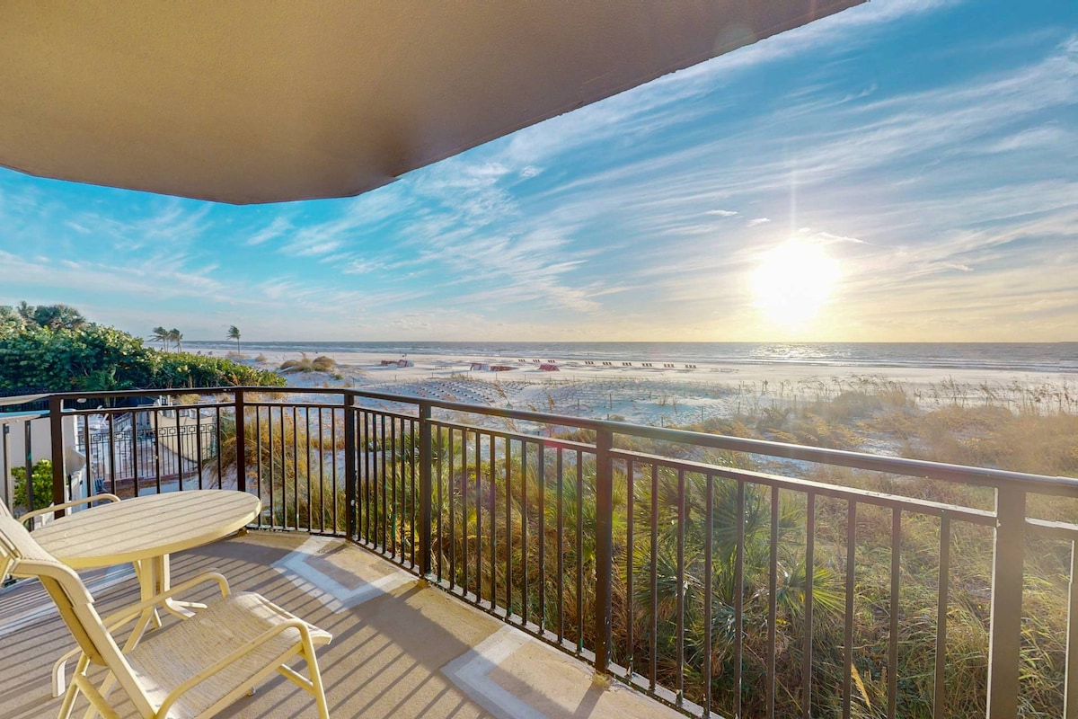 NEWLY FULLY RENOVATED breathtaking beachfront condo on private beach. Walking distance to bars, restaurants, live music and more! Brand new king size bed, high speed wi-fi, Smart TVs with cable/Netflix, heated swimming pool, BBQ/Grills, outdoor tables, showers, beachfront balcony, workspace and you are RIGHT on the beach! Short drive to TPA/PIE airports, Downtown St Pete, Dali Museum & more! The condo is fully equipped with everything you need and run by a Superhost for a perfect Beach vacation!