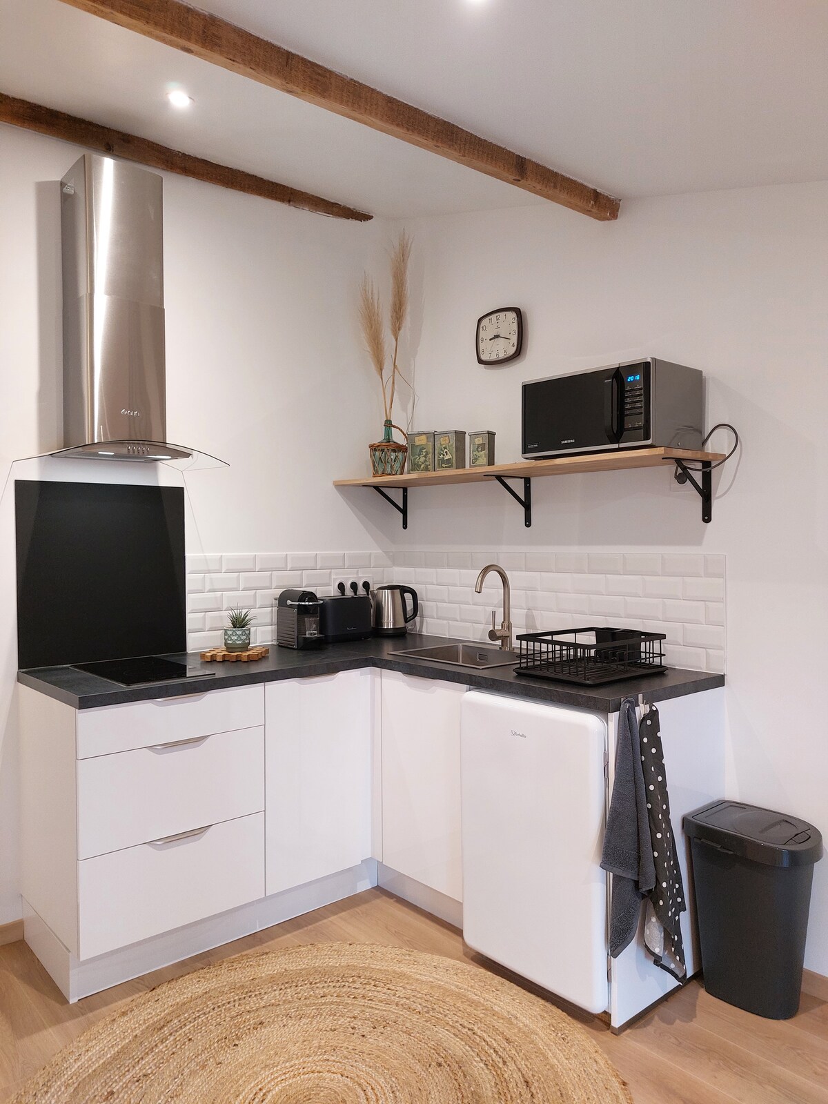Apartament, centru complet. Potrivit pentru cuplu. Animalele de companie sunt permise, dar niciodată singure în apartament. Bucătărie/sufragerie echipată, living și dormitor separate de un perete despărțitor din sticlă, baie, toaletă. Parcare gratuită la 5 minutede mers pe jos. Cuptor, cuptor cu microunde, tăvi de copt, prăjitor de pâine, prăjitor de pâine, mașină de spălat rufe, mașină de spălat rufe, frigider. TV, internet, ventilator. Mașină de spălat rufe, fier de călcat și masă de călcat. Un pat 140 X 190. Uscător de păr. Carrefour City și strada pietonală la 200 m distanță