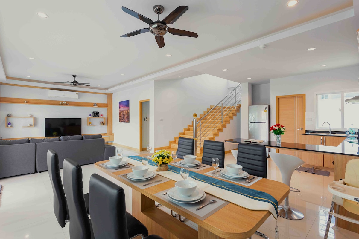 Bine ai venit la vila ta de lux cu piscină privată din Pattaya, evadarea perfectă pentru familii, prieteni și grupuri care caută spațiu, confort și amintiri de neuitat. Trezește-te la soare lângă propria piscină, bucură-te de o cină la grătar sub stele sau fă o scurtă plimbare până la plajă pentru a admira apusul de soare — toate din acest refugiu tropical frumos amenajat. Situat aproape de strada pietonală și de plajă, de magazine, restaurante și viața de noapte, dar într-un cartier liniștit și pașnic — beneficiezi de tot ce e mai bun din ambele perspective.