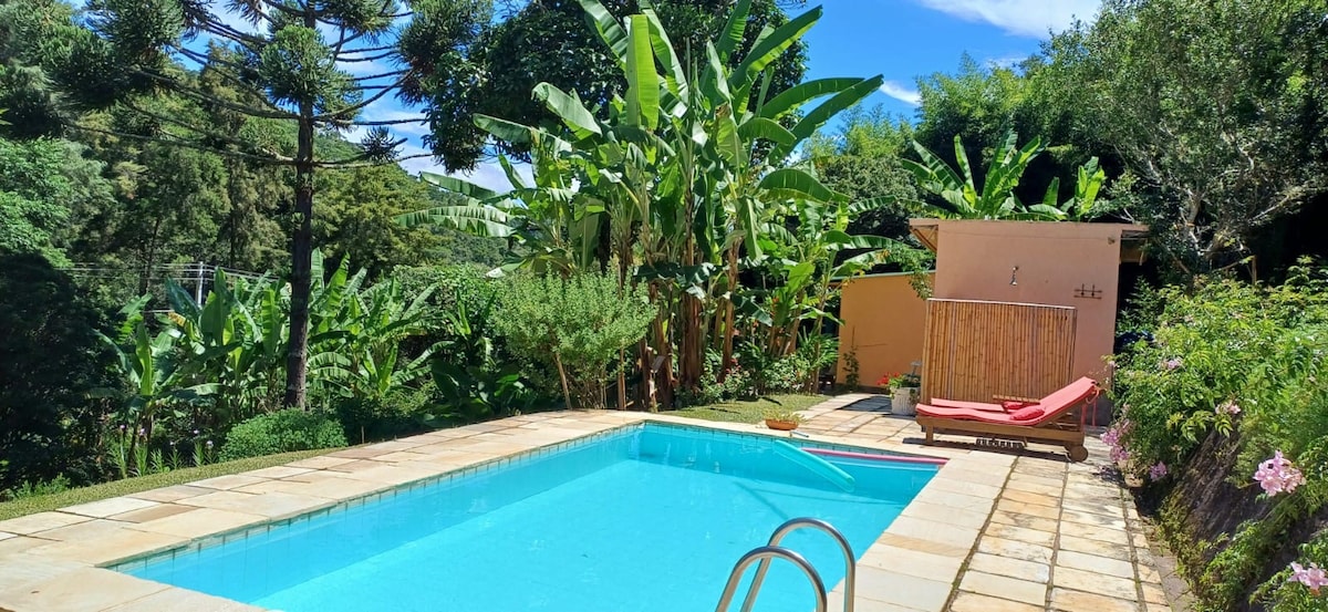 Desacelere - Aici găsești simplitate, natură și ospitalitate într-un singur loc. Casa das Flores este o escapadă fermecătoare, cu o grădină de flori, lemn roșu sub copaci și o piscină comună pentru relaxare. Spațiul a fost creat cu afecțiune pentru a-i primi pe cei care apreciază căldura și contactul cu natura Păsările și fluturii sunt vizite constante în grădină și nu este neobișnuit să fii fermecat de dansul păsărilor colibri printre flori O experiență de frumusețe simplă, senzorială și naturală