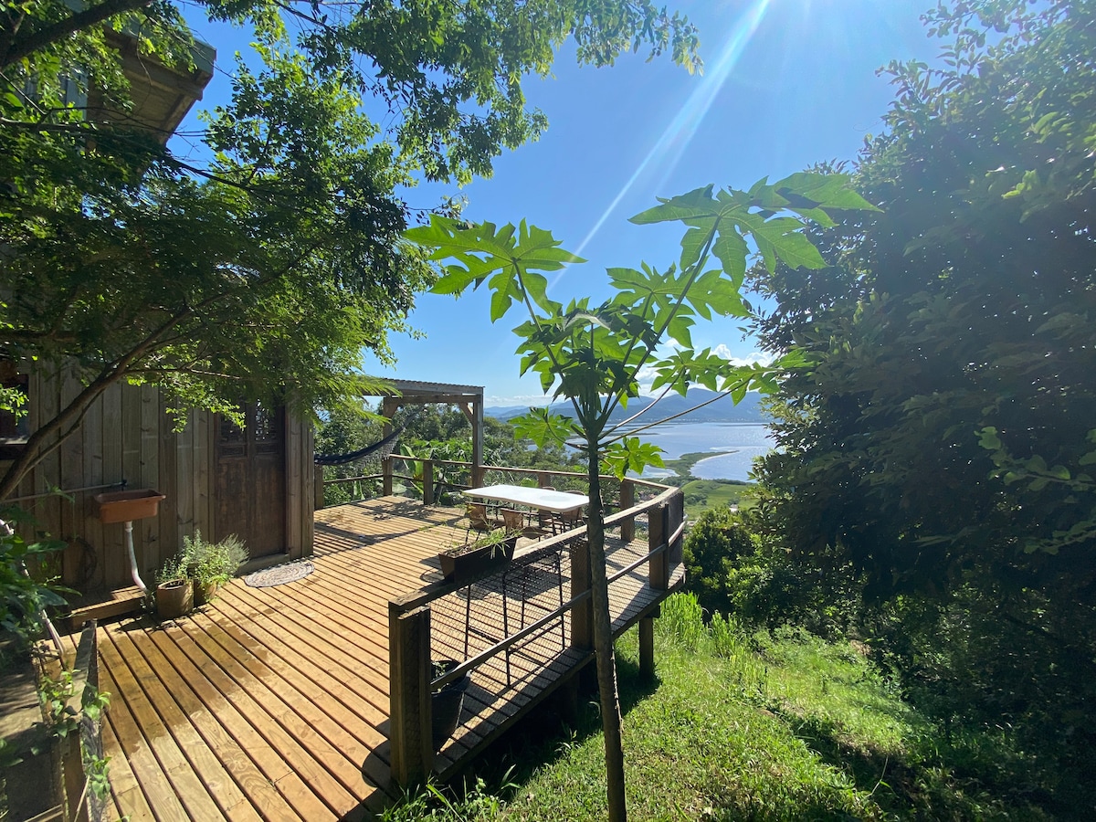 Reconecte-se com a natureza nesta fuga inesquecível! Um lugar incrível e privado para refletir, criar e mergulhar na natureza de forma harmoniosa. Aqui, você experimentará uma sensação única de imersão ao estar cercado pela Mata Atlântica enquanto contempla e o nascer do sol e vistas deslumbrantes sobre o oceano, a lagoa e a montanha da Pedra Branca. A intenção é que ao ficar aqui você se desconecte totalmente do mundo exterior e se reconecte consigo mesmo!
