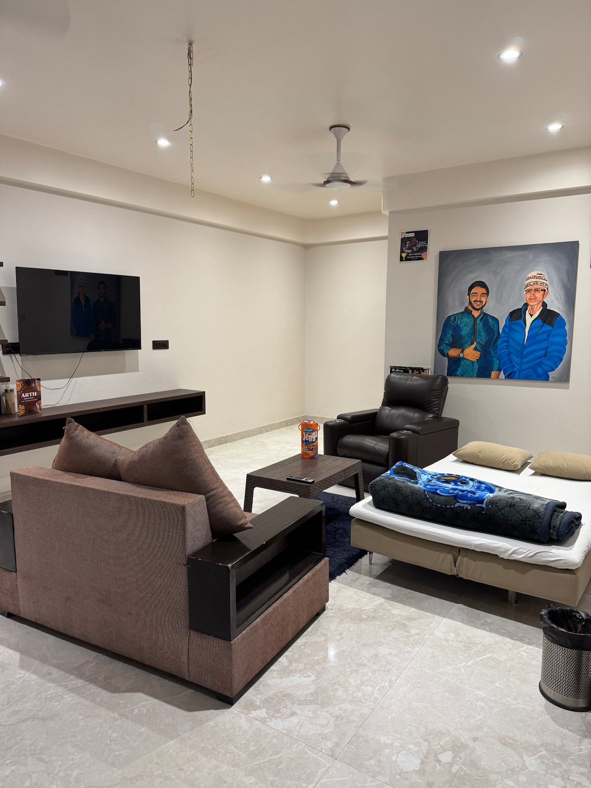 Mussoorie Glow este un penthouse privat 3BHK conceput pentru șederi memorabile. Iluminatul cald, interioarele confortabile și o terasă Skyview o fac ideală pentru familii, grupuri și sărbători. ✨ Puncte forte • 3 dormitoare tematice • Bar lounge și living pregătit pentru Netflix • Terasă privată cu vedere panoramică • Bucătărie utilată și băi moderne • Decor elegant cu iluminare ambientală 🌄 Ideal pentru familii, escapade cu prietenii și ocazii speciale. Situat în dealurile liniștite Dehradun–Mussoorie pentru o ședere confortabilă, premium.