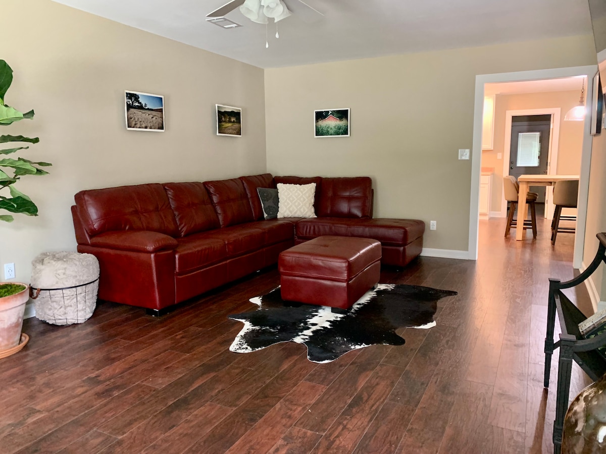 Recent renovat și situat convenabil în Perry, în apropiere de facilitățile din centrul orașului, I-75 și GA National Fair Grounds. O mulțime de spațiu de care să te bucuri cu prietenii și/sau familia. Fie că ești în oraș pentru afaceri sau doar te bucuri de tot ce are de oferit Perry, această casă în oraș se va simți ca acasă departe de casă. Internet de mare viteză cu birou, canapea secțională mare, masă de șase persoane, bucătărie complet mobilată, mașină de spălat și uscător automat de rufe, iar curtea din spate este împrejmuită pentru un plus de intimitate.