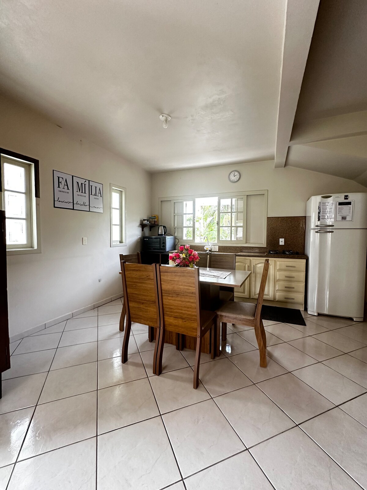 Casă spațioasă, la 400 m de plajă și la 100 m de centru. Capacitate maximă pentru 6 persoane. Confortabil și comod. Vedere excelentă la laguna Ibiraquera de pe terasă. Punct de observație în cel mai înalt punct al dealului, cu vedere la ocean. Dormitor principal cu baie privată, cu pat dublu (fără aer condiționat), 1 dormitor cu 5 paturi de o persoană și baie exterioară. Mezanin cu 1 pat dublu. Living și bucătărie. Duș în aer liber și grătar. Terasă exterioară. Parcare privată pentru două mașini. Wi-Fi bun și sigur.