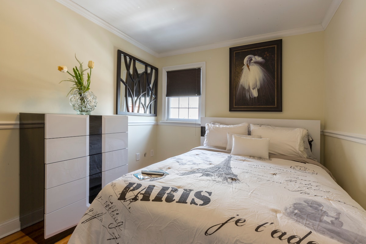 Te vei îndrăgosti de decorațiunile noastre interioare și de mobilierul modern! O casă adevărată departe de casă! Suntem într-o locație sigură și convenabilă și la o călătorie cu trenul de New York și de multe obiective turistice. Acesta este un spațiu comun. Cazări pentru gazde în timpul șederii tale