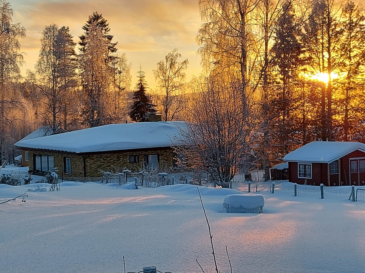 Cazare unică și relaxantă cu vedere la Torneälv. O cabană confortabilă de aproximativ 50 mp și locul perfect pentru a te relaxa cu prietenii sau familia. Cabana oferă o saună și este o alegere excelentă pentru călătorii interesați de experiențe în natură și aproape de activități precum schi și pescuit cu acces la barcă. Casa la țară este situată la 14 km sud de Cercul Arctic, într-un sat mic. Distanța până la aeroportul Rovaniemi este de 96 km, iar până la aeroportul Luleå este de 124 km.