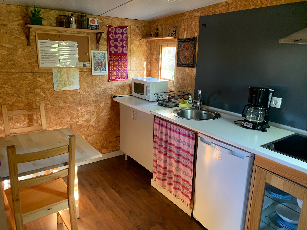 Cabana din bușteni este verișoară și confortabilă. Este încălzită iarna . Oferă sentimentul de a fi în inima naturii . Se află sub stejari frumoși vechi de secole. Oferă tot ce ai nevoie pentru a găti . Vara te bucuri de grădină , de livadă , de râul cu plaja sa fluvială.. iarna, situl te invită să te relaxezi și să te odihnești și să te reconectezi cu bateriile naturale. Priveliștea are vedere la grădină , câmpuri și podgorii. Suntem la 15 mn cu mașina de plaje .