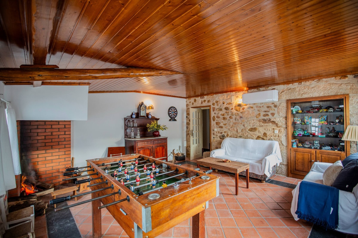 Relaxează-te în acest spațiu liniștit și elegant, unde tradiția și confortul coexistă în armonie. Fiecare detaliu a fost gândit cu atenție pentru a oferi o experiență unică, învăluită în frumusețe și liniște. Înconjurată de un peisaj înverzit, casa este situată în apropierea râului Mondego, ideală pentru băi răcoritoare și coborâri interesante ale caiacului. Este escapada ideală pentru cei care caută o experiență autentică. Lasă-te fermecat de această oază de liniște din inima Portugaliei.