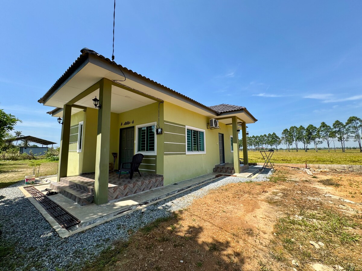 Bine ai venit la Paddy View Home! O ședere confortabilă cu priveliști frumoase asupra câmpului de orez, WiFi gratuit și Netflix. Situat în apropiere de Langgar, Kedah, la doar o scurtă plimbare cu mașina până în orașul Alor Setar (15 minute). ✅ 2 dormitoare (2 paturi matrimoniale + 2 paturi de o persoană în total) ✅️ 2 băi cu dușuri (fără încălzitoare de apă) ✅️ 4 prosoape furnizate ✅ Parcare gratuită ✅ Aer condiționat în toată camera și în camera de zi ✅ Înconjurat de lanuri de orez Casa este situată chiar lângă drumul principal, astfel încât poate fi puțin zgomot de la vehiculele care trec.