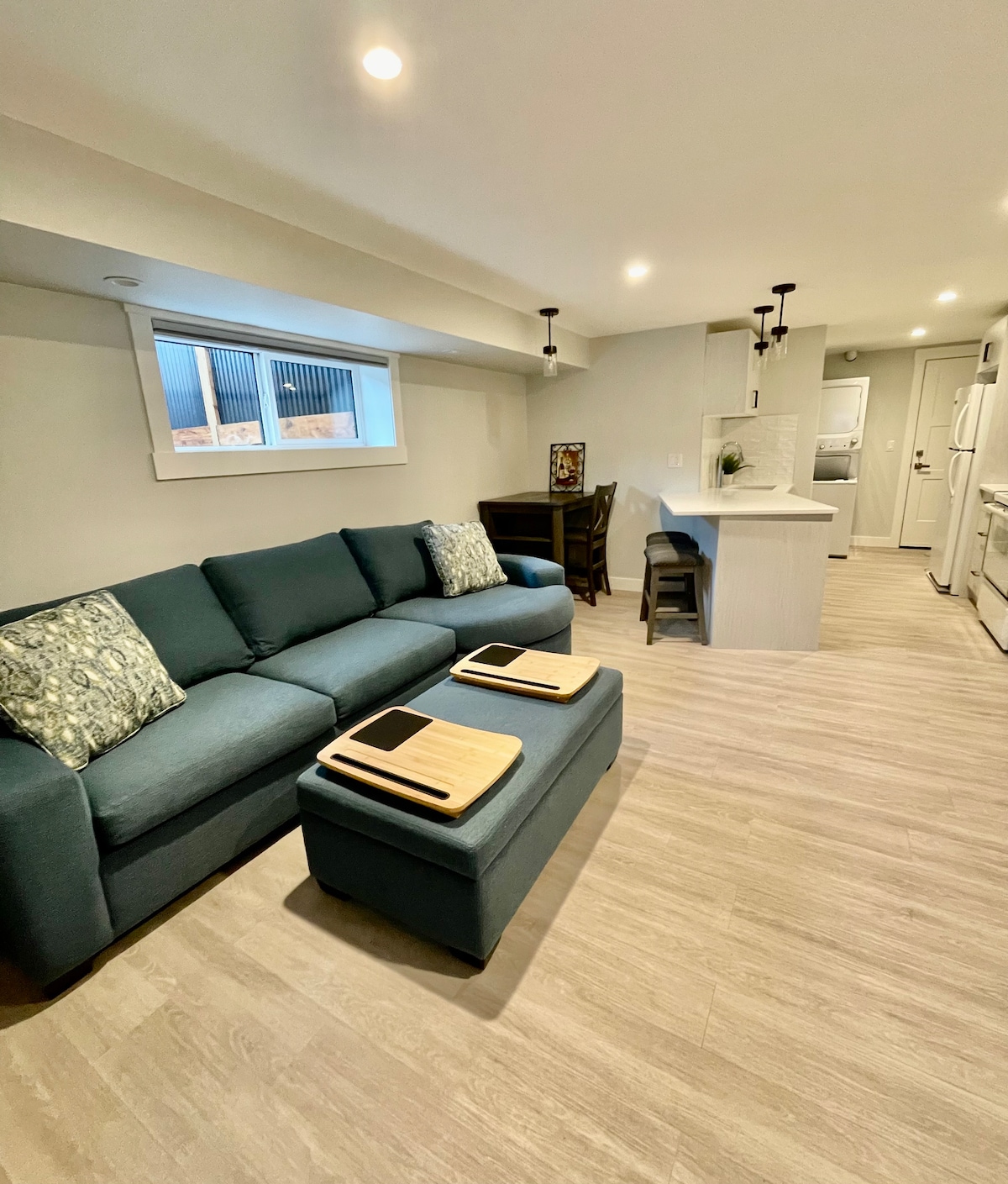 Enjoy a peaceful experience at this new, centrally located suite on a very quiet street. Plenty of room to work and lounge. Adjacent the KVR trailhead, quick access to downtown/beaches/events. Rent or bring bikes, hit the trail, the beach, or the wineries for a quintessential Okanagan vacation. You'll have a full kitchen, one larger bedroom with queen bed, and a second bedroom with a double to sleep a total of 4 people. Toys for the kids, and baby items on request.