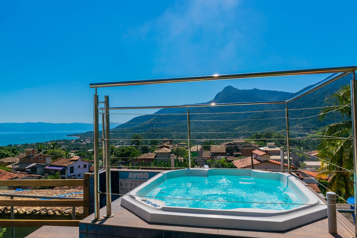 Chalé Romântico nas montanha/Jacuzzi com vista mar