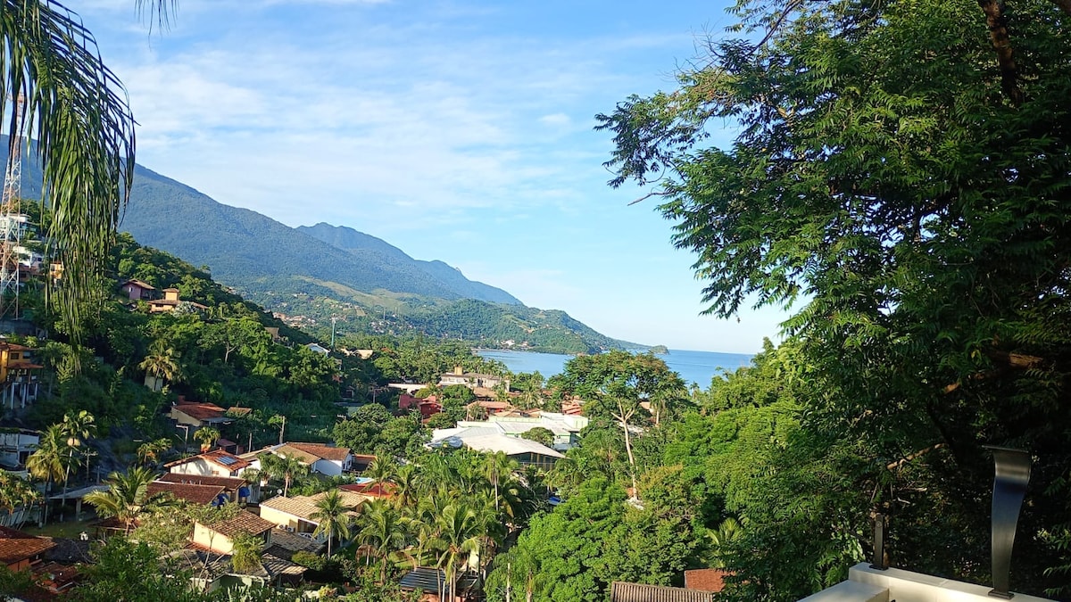 Un apartament cu intrare privată în Ilhabela, vedere la mare, zonă în aer liber, echipat pentru o cafenea sau gustări mici (cuptor cu microunde, cafetieră, minibar, veselă) într-un cartier central, stradă liniștită, rezidențială și fără ieșire. La 900 de metri de bulevardul principal și de plajă. Loc familiar, sigur și foarte liniștit (fără muzică tare). Nu uita să aduci lenjerie de pat și de baie, deoarece nu le oferim. Animale de companie numai mici, de dimensiuni medii. Nu este permisă lăsarea acestuia liber în zona exterioară. Include animalul de companie în rezervare.